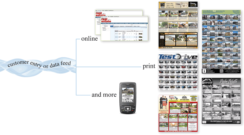 Virtual AdTaker's products seamlessly merge your data, then dynamically assemble, format and feed it into one or more printable pages as well as multple websites. They also enable you to accept online payment for every publishing destination at once, giving your customers a truly one-stop shopping experience.